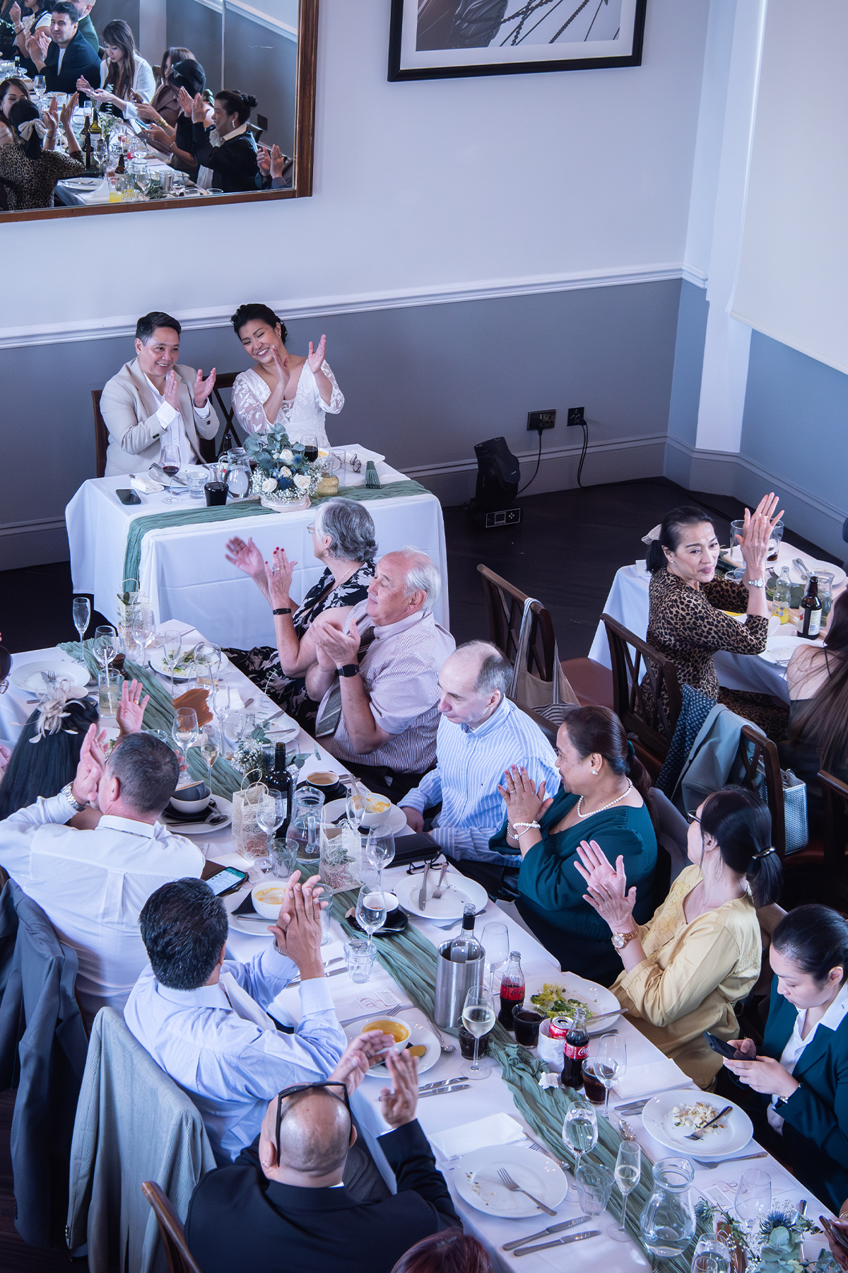 That easygoing energy carried throughout the ceremony and into the celebrations afterwards. When they walked back through the room as newlyweds, the cheers and applause from their guests filled the space.